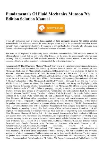 | File Name: Fluid Mechanics Munson 7Th Edition Solution Manual .pdf Size: 7702 KB Type: PDF, ePub, eBook |